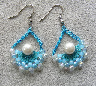 I called the matching earrings "Waves." They use the same beads as the necklace above. I added colored aluminum chain to hang the waves from the earwires.